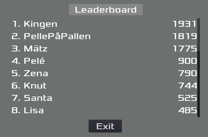 I have previously made a simple highscore service that is hosted in Azure with a MongoDB database. This service can store player results for arbitrary games and I currently use it for some simple web games. I have now registered a new entry for the Star Hunter-game and I have made an integration from this Godot game.